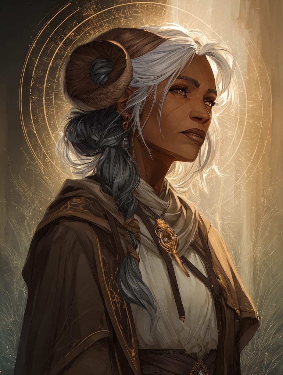 - Xhalara - Teifling Cleric of the Everlight, Light Domain